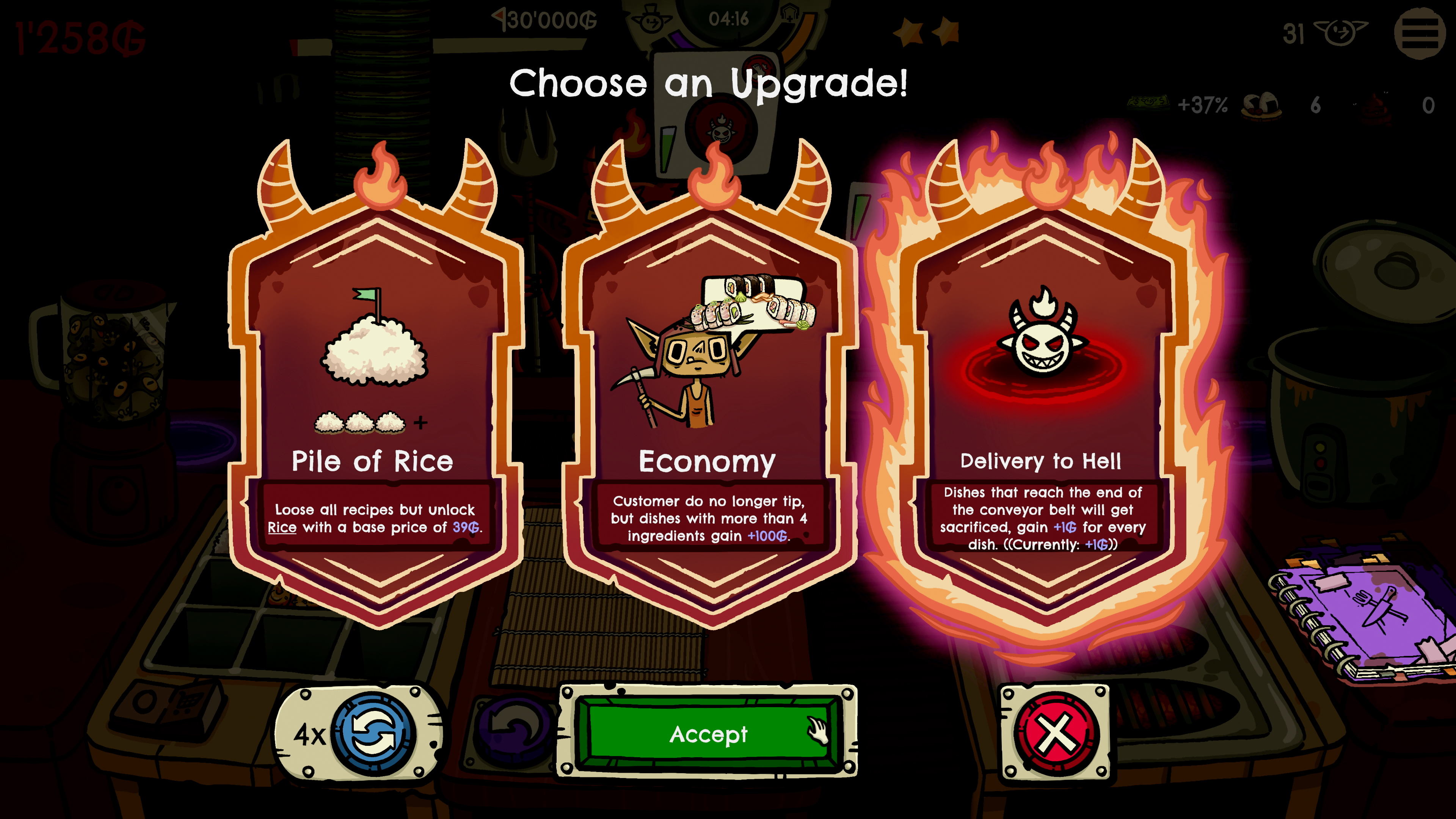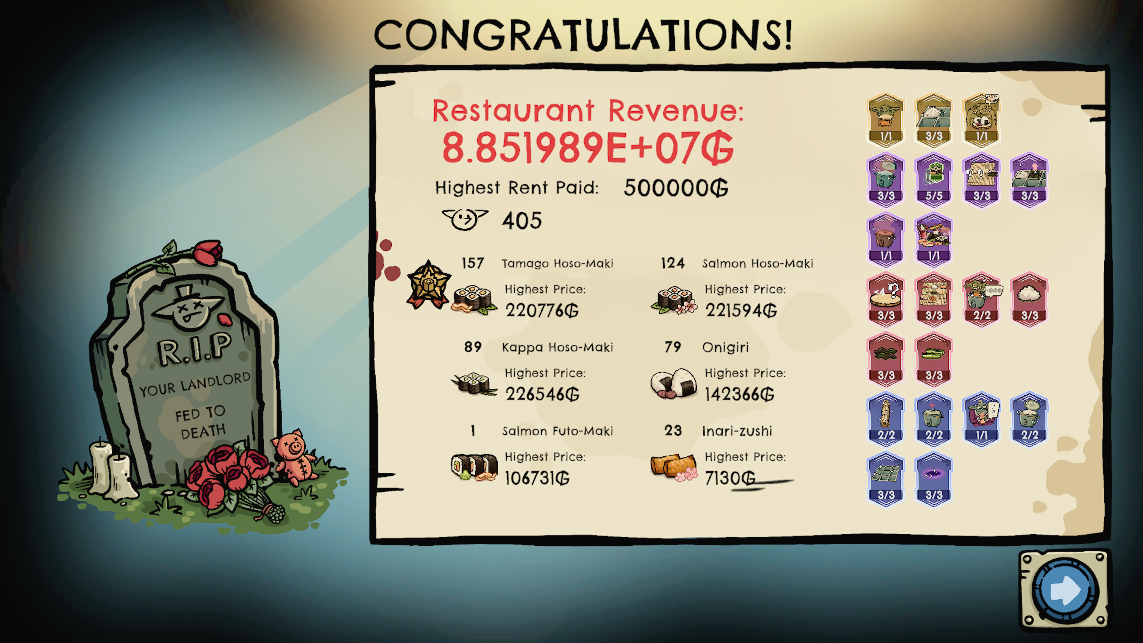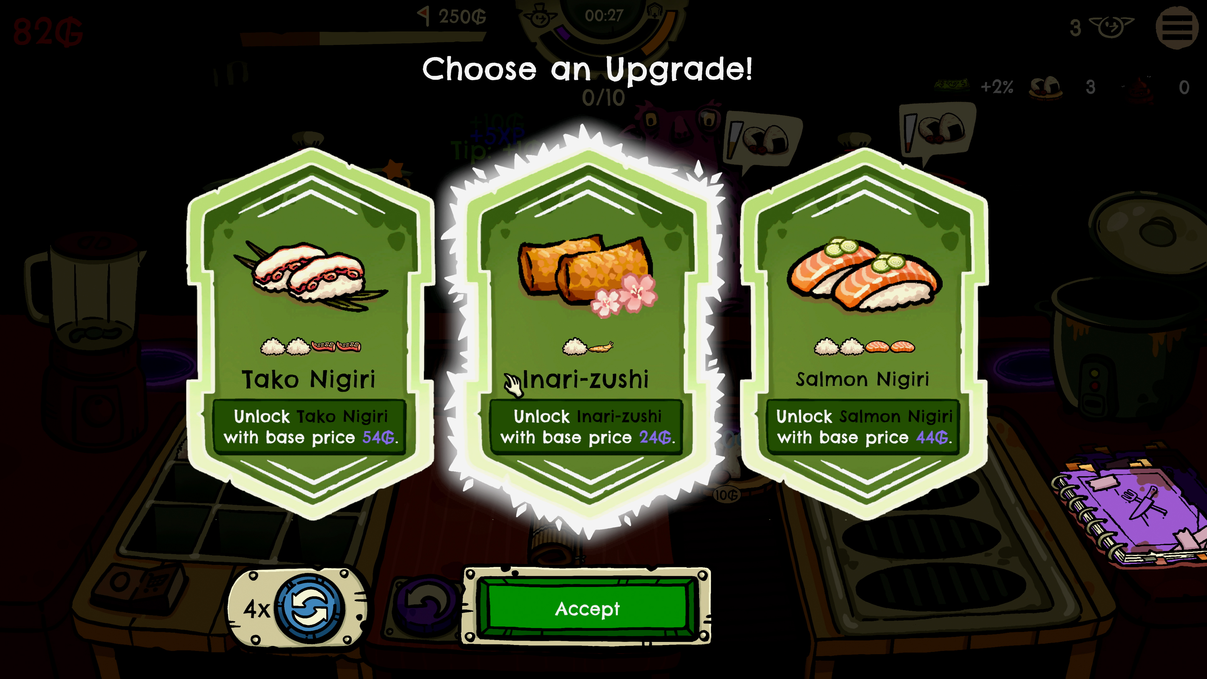 Improve your restaurant, the menu, and above all, your cash flow! Tinker with powerful sushi combos, turbocharge your rice cooker, or just screw everything and serve exquisite poop.